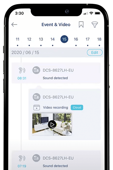 Access and view all your recorded events and videos on the mydlink™ app. You can also download your videos to your device and share them.