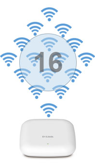 Supports up to 16 SSIDs, 8 per Band, including Station Isolation