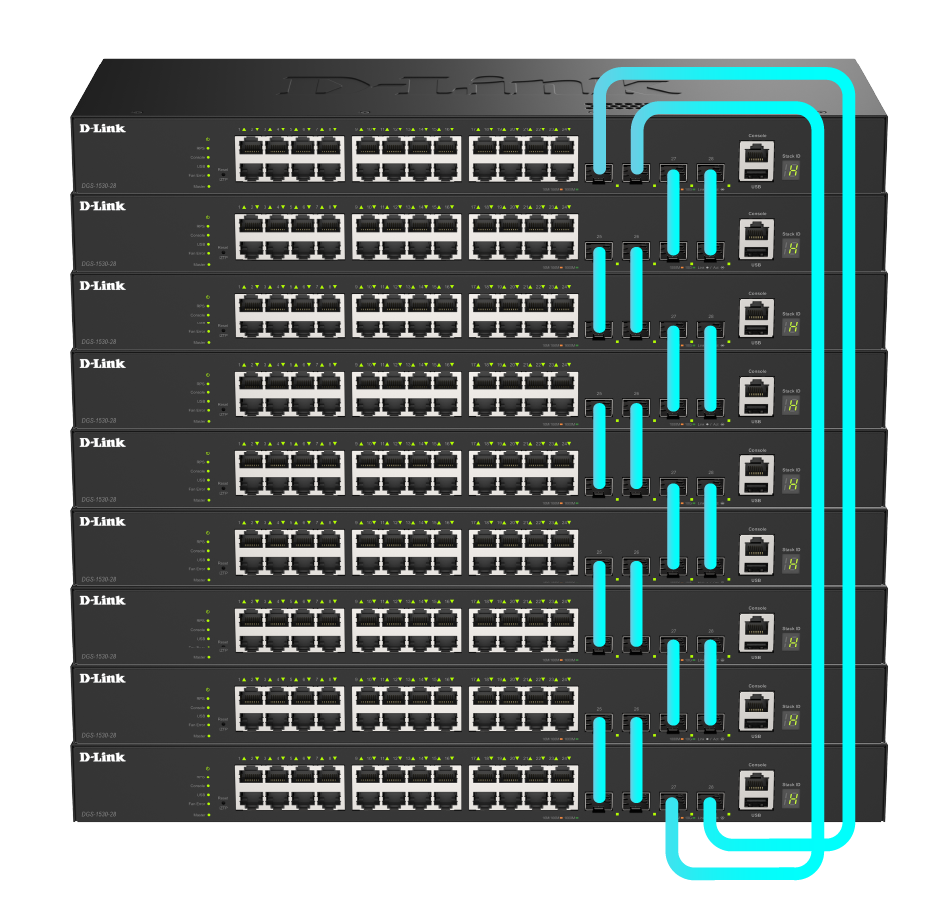 • Physical stacking up to 9 switches