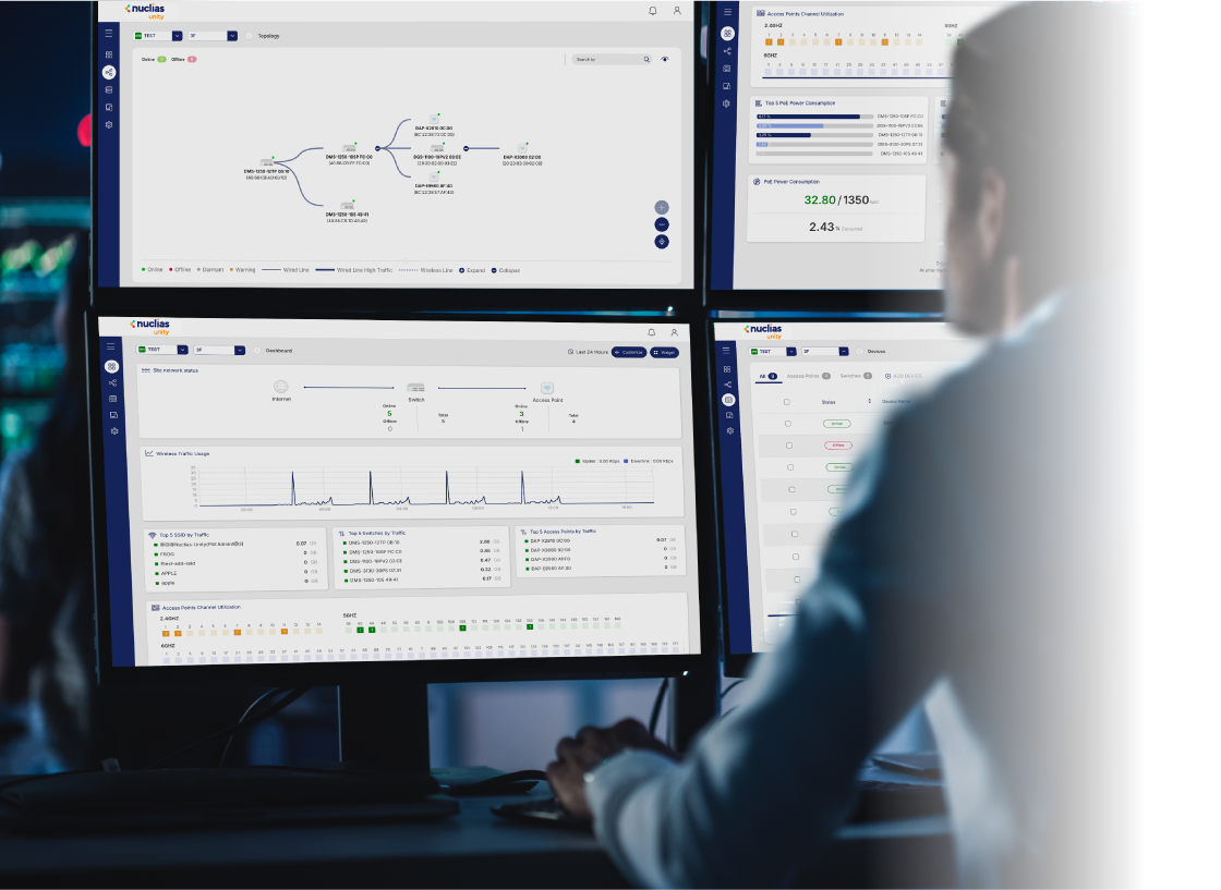 Nuclias Unity is your single pane of glass for complete, cloud-based network control. Unify the setup, monitoring, and security of all your APs and switches from one intuitive dashboard—with zero added license fees. Visualize your entire network on a live topology map, push centralized configurations with a click, and get proactive alerts. Deploy faster, troubleshoot smarter, and simplify your IT life and reclaim your time.