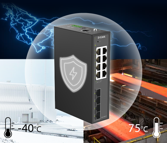 The DIS-210G-12 is built with a rugged, durable design ideal for harsh environments such as outdoor installations, unconditioned factory floors, and remote sites. With a wide operating temperature range of -40°C to 75°C, it ensures stable and reliable performance even in extreme conditions. Its industrial-grade IP40-rated enclosure protects against dust and solid particles larger than 1mm, while the fanless design and 6kV surge protection on all Ethernet ports help reduce the risk of downtime and enhance long-term reliability.